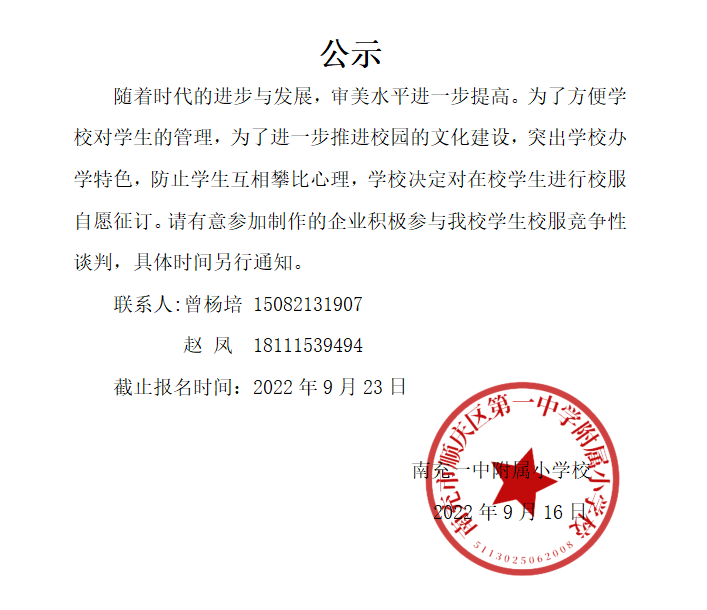 校服选购公告