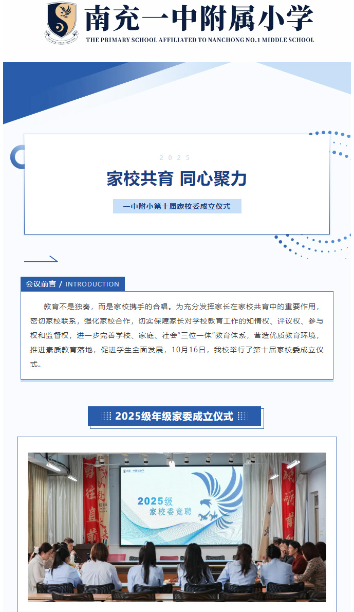家校共育 同心聚力|南充一中附属小学第十届家校委成立仪式纪实-九游会j9网站首页