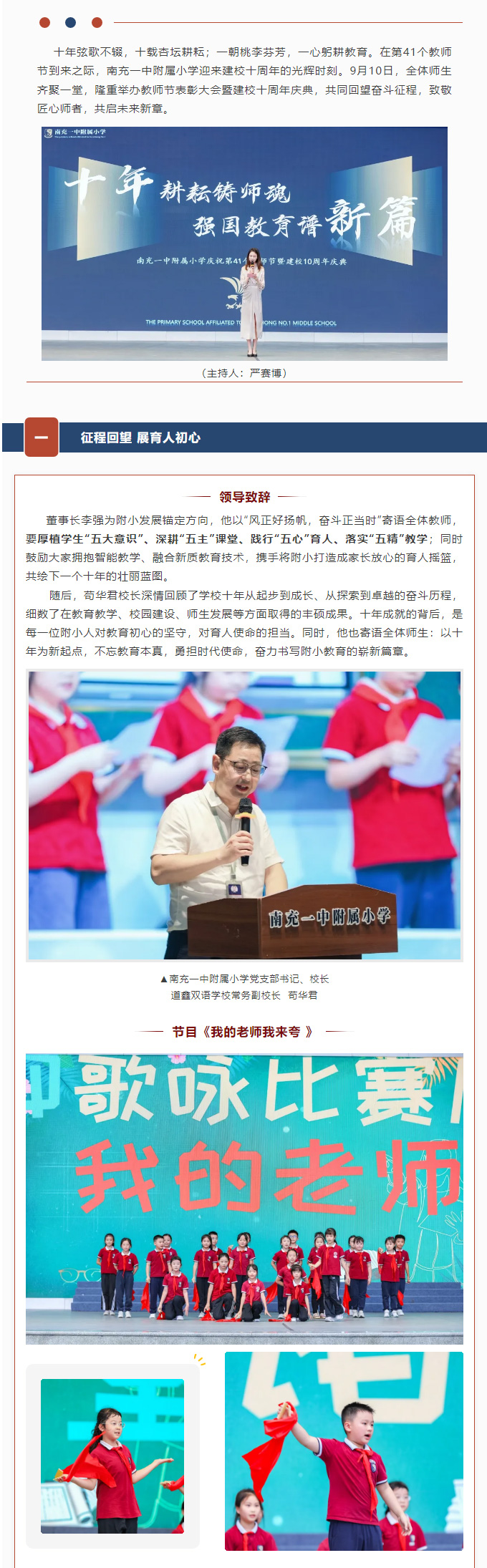 南充一中附属小学第41个教师节暨建校十周年庆典
